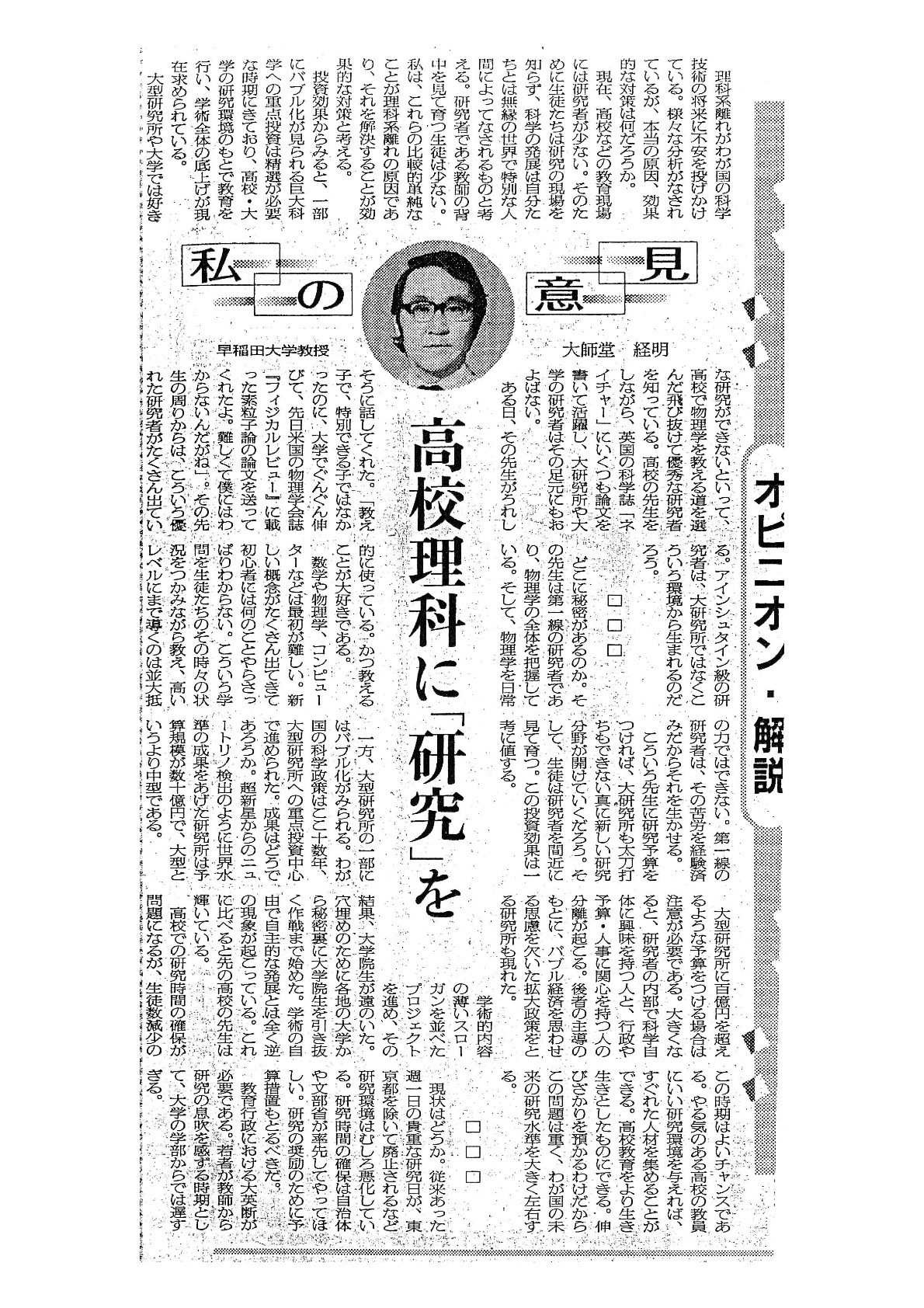 ・科学新聞特集記事「科学者が語る自伝」(2)阪大時代から原研先端研(PDF)