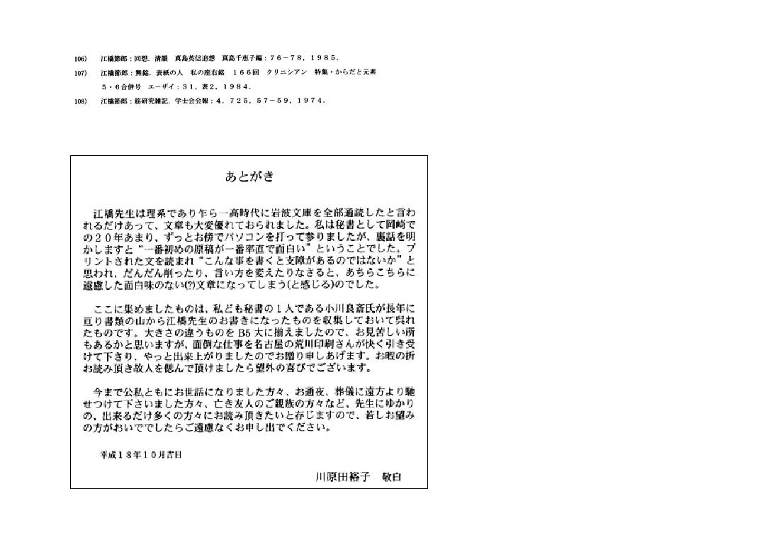 「江橋節郎、言の葉集」遺稿集 (江橋文子夫人編) より抜粋