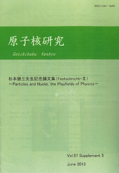 杉本先生はこの本を大変お気に入りで「 Festschrift 」と名づけられ、また20年30年後に第2版を作ろうと言って居られました。20年後30年後の原子核研究の発展を期待してのお気持ちでした。先生が90歳になられる年に、今度は卒寿のお祝いに出版したいと考え関係者に執筆をお願いするなど準備を進めていたところ、後数ヶ月で卒寿を迎えられるという2012年の秋に冥界に去られました。 今年にはその後の30年史を書こうと提案しましたところ、皆さんのご賛同を得ることができました。この30年の進歩は著しく、素粒子から物性物理学•化学•生物学医学など、原子核の隣接分野にも広がって展開した皆さんの活躍を振り返ると感動的な歴史です。 この30年史を記す文集を「Festschrift II」と呼ぶことにします。この30年にわが国の原子核研究者が新しく拓いた道程を示す記録になると考え、特に、グループの機関誌である「原子核研究」誌の特集号として出版致します。さらに、これまで原稿の収集と編集、執筆者相互の連携などの目的で、アルス文庫を利用してきましたが、「原子核研究」誌編集委員会のご了解を得て引き続き掲載することによりWEB上に公開することに致しました。以下をご覧下さい。